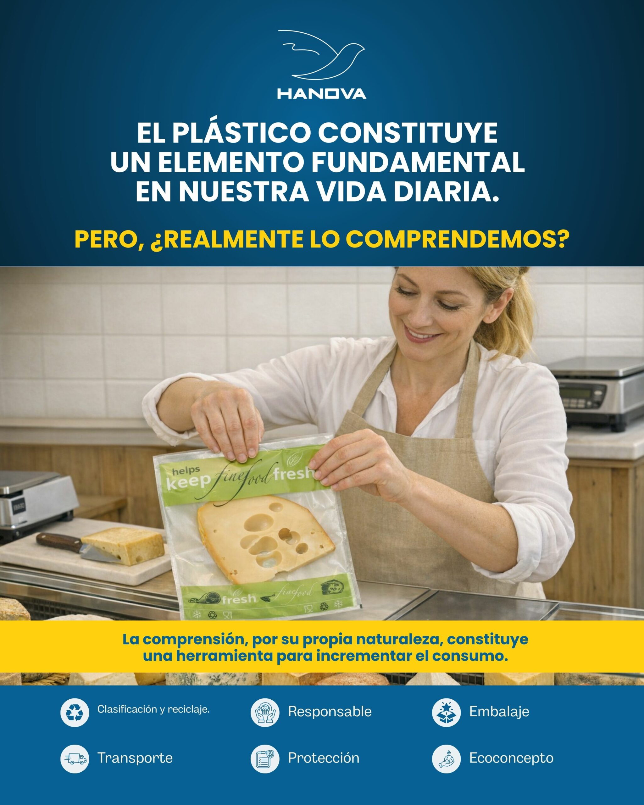👉 Diseñar mejor: nuestro equipo de I+D trabaja cada día en monomateriales y ecodiseño. 👉 Utilizar mejor: nuestros equipos de compras y producción priorizan materiales reciclados para crear productos reciclables. 👉 Separar mejor: Hanova valoriza todos sus residuos de producción.
